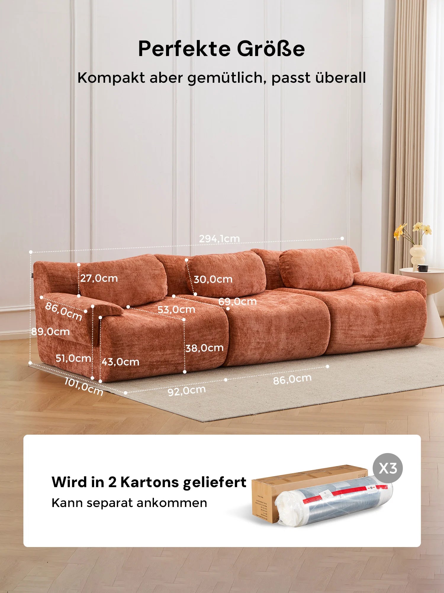 Mit hochwertigem Chenille-Stoff bezogen, bietet das Sofa eine sanfte, hautfreundliche Haptik mit edler Ausstrahlung. Die flauschige Struktur verleiht jedem Wohnraum Wärme und Eleganz.
