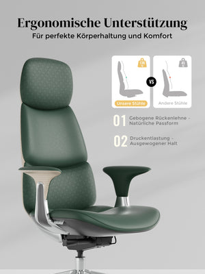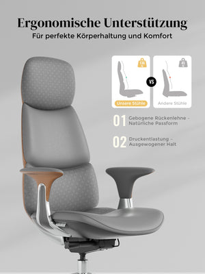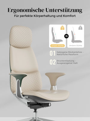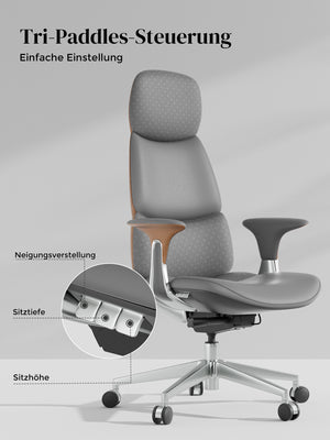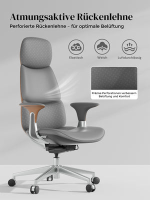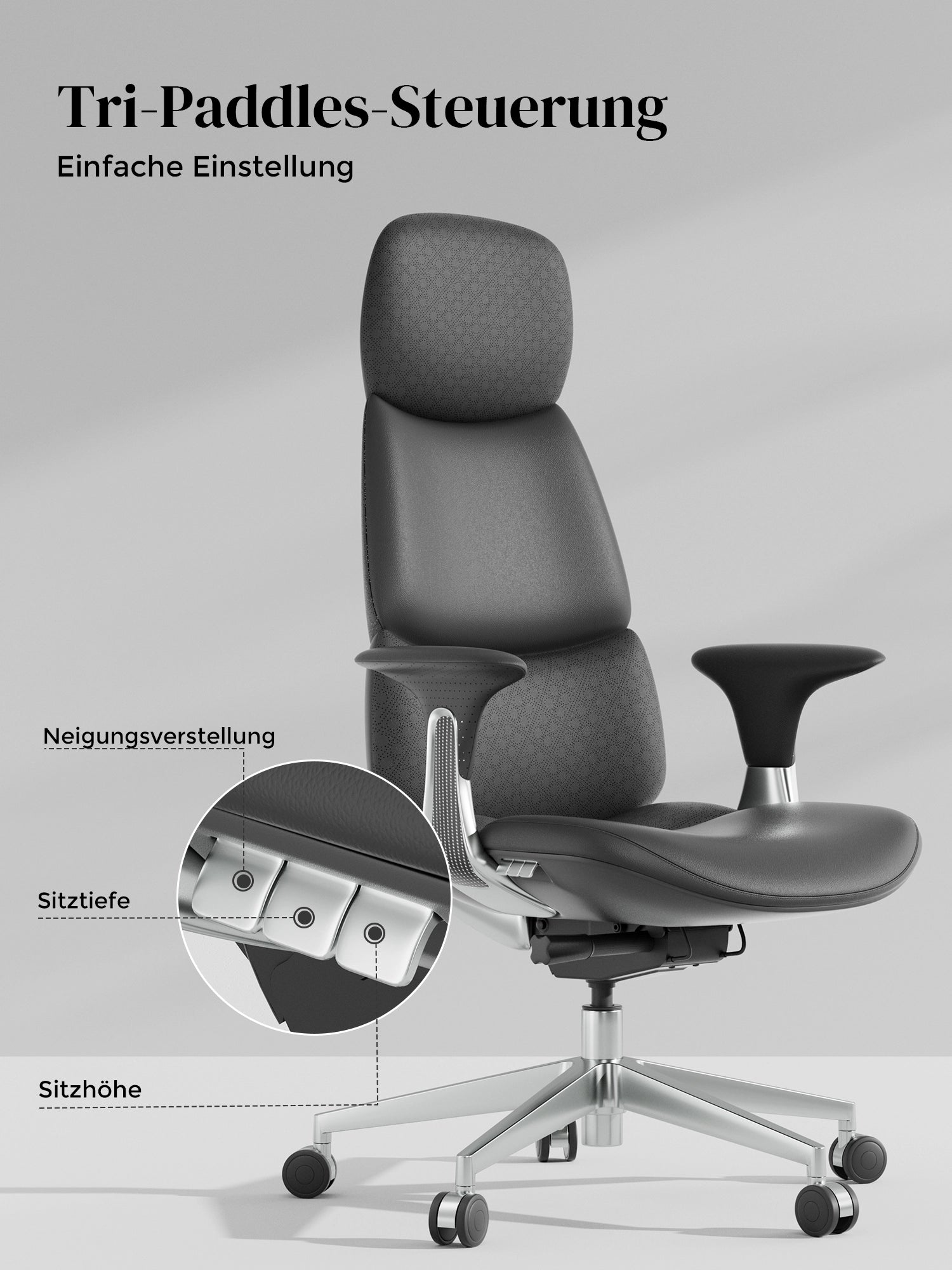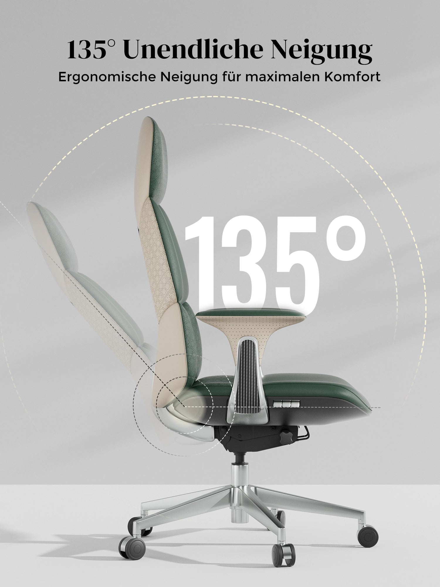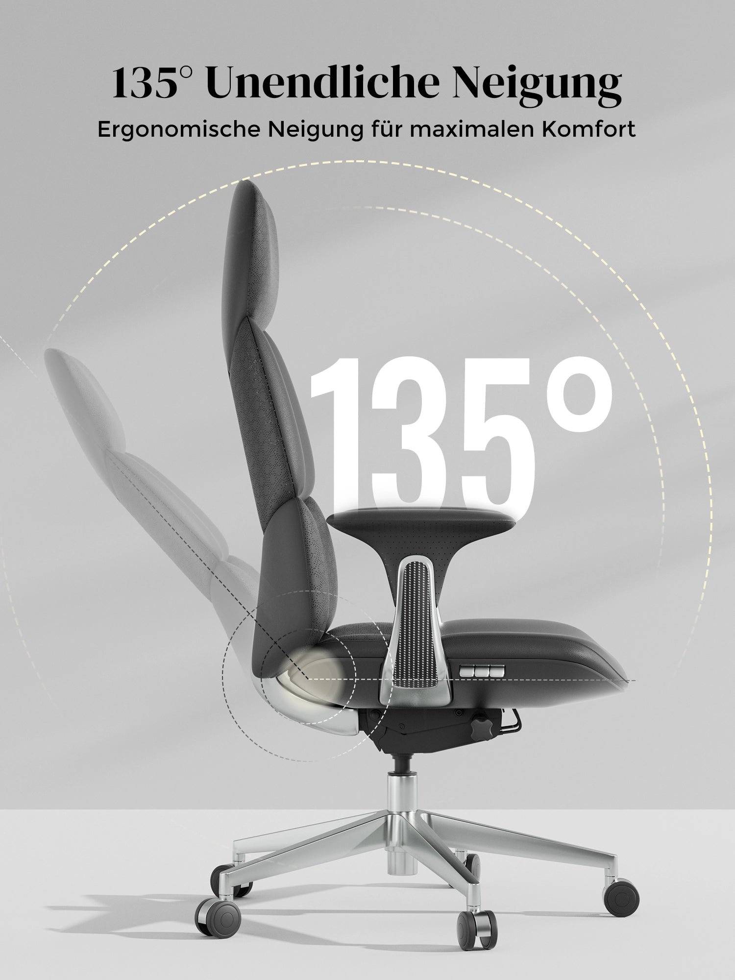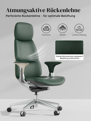 · Rollen: Hochwertige, halb aus Aluminium gefertigte Silent-Rollen, zertifiziert nach SGS / Greenguard Gold / TÜV-geprüft, ergonomisch