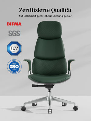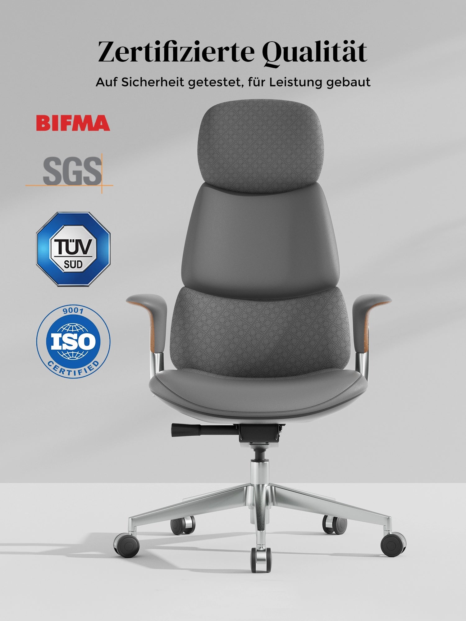 · Fußkreuz: Hochwertiges Aluminium-Druckguss-Fußkreuz, poliert, erfüllt und übertrifft die BIFMA 5.1 Norm (Statiktest)