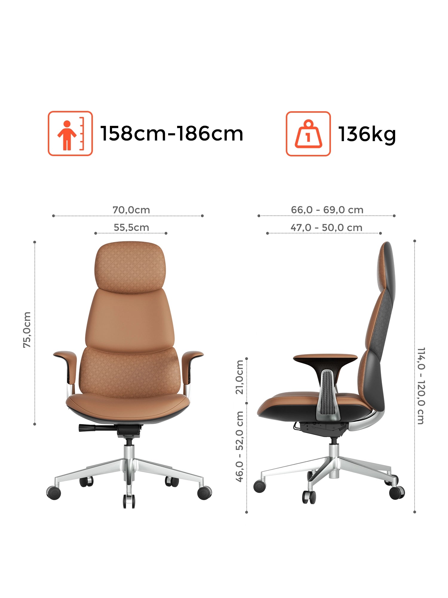 | Sitztiefe | 47,0 – 50,0 cm |