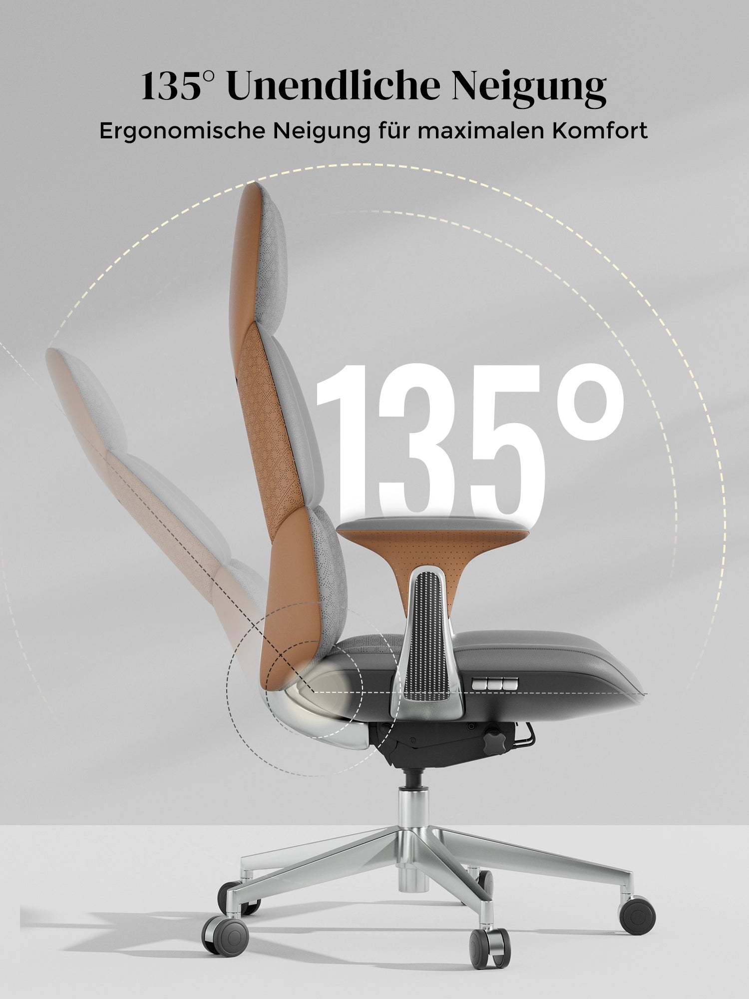 · Mechanik: Dreihebel-Mechanik mit Drahtsteuerung, in jedem Winkel arretierbar, Neigung bis 135°, Sitzfläche verschiebbar