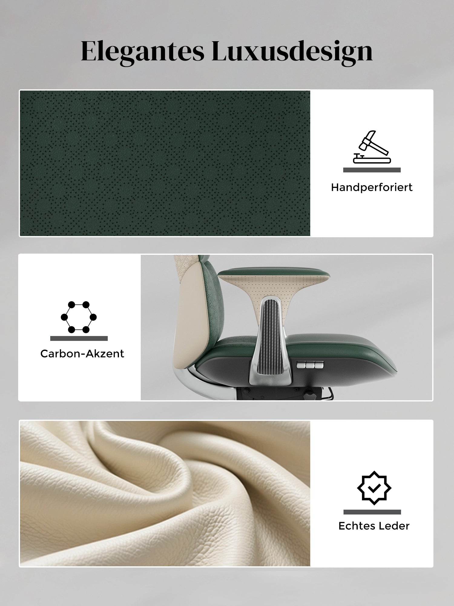 | Lederfarben | Schwarz / Beige / Grün / Grau / Braun |