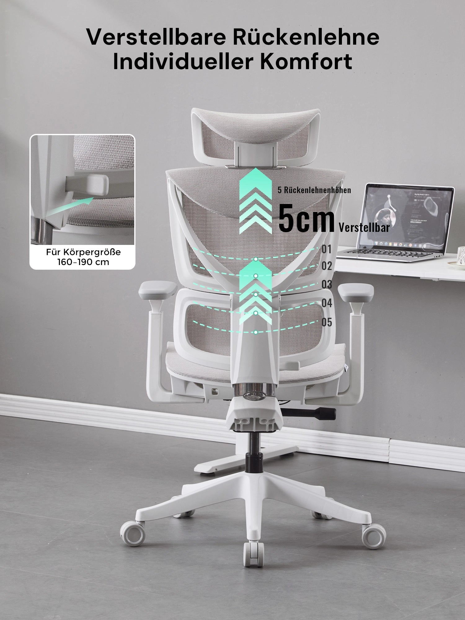 | Rückenlehnenpositionen | 95°/ 104°/ 111°/ 119° |