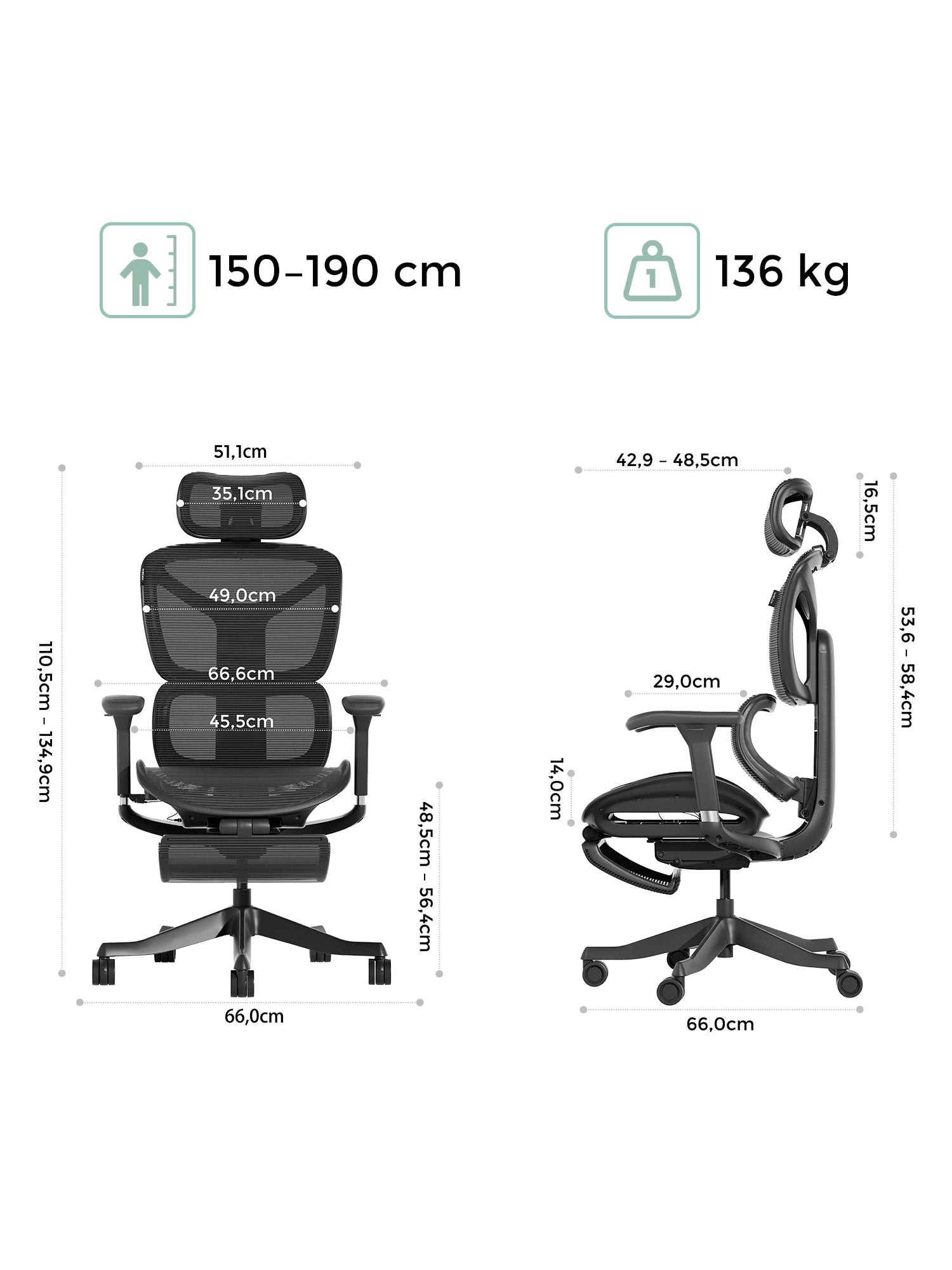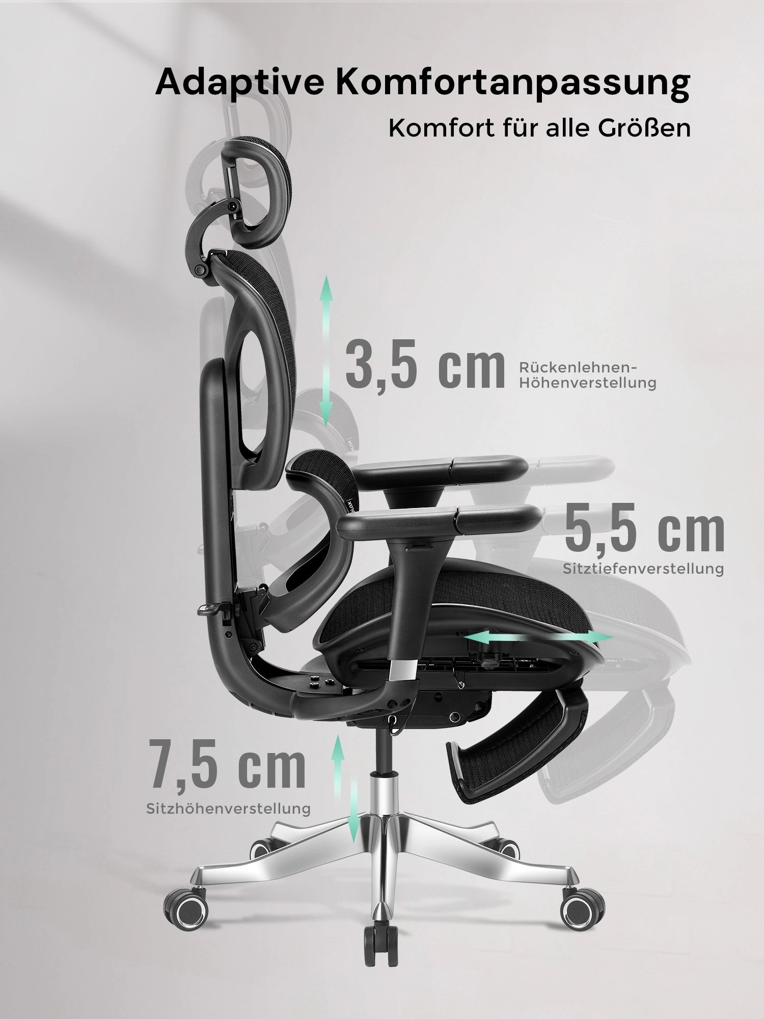 Welax - S9 Pro Ergonomischer Bürostuhl mit Ein-Tasten-Verstelluung